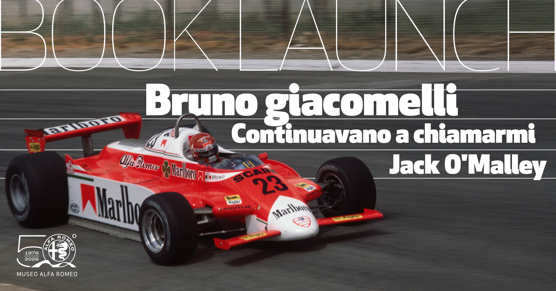 Bruno Giacomelli è stato l'alfiere del ritorno dell'Alfa Romeo in Formula 1 con cui, a Watkins Glen 1980 ha addirittura doppiato le Ferrari di Scheckter e Villeneuve. La sua autobiografia racconta gli anni dell'Autodelta di Carlo Chiti ma anche le vicende e la carriera di un pilota velocissimo, “maestro" indiscusso della Formula 2 e testimone di un'epoca affascinante del motorsport. Il Museo ne ospita la presentazione, fra le sue automobili.